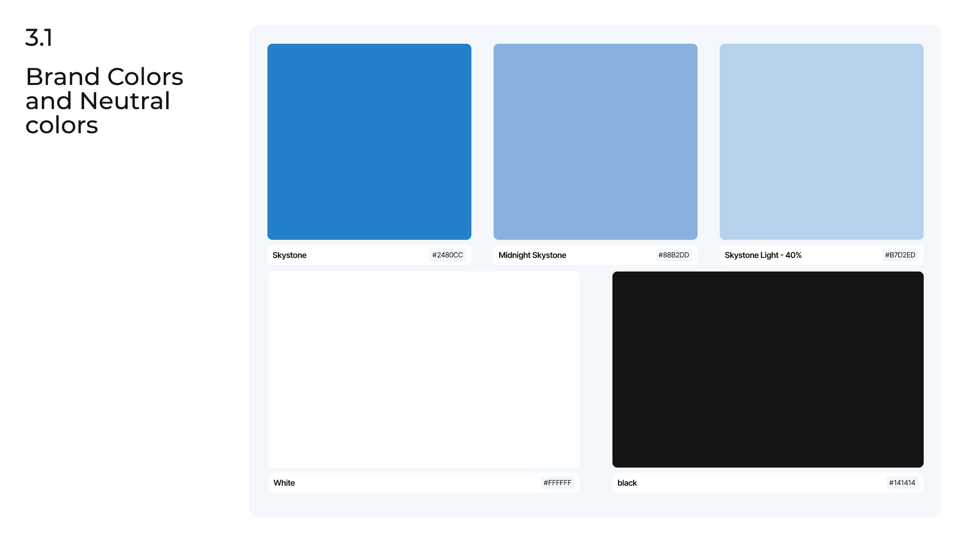 Color plays a huge role in building trust. We chose a primary palette that felt stable, professional, and optimistic. The "Skystone" blue evokes feelings of trust and stability, while the clean neutrals provide a clear, no-nonsense foundation that speaks to the brand's transparency.